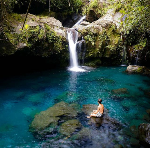 2. Telaga Sunyi: Kolam Biru Sebening Kristal Sesuai namanya, tempat ini menawarkan ketenangan dengan suara gemericik air. Air telaganya yang berwarna kebiruan dan sangat jernih bikin pemandangan bawah airnya terlihat jelas. Tips Fotografi: Bawa filter CPL (Circular Polarizer) untuk lensa kameramu agar pantulan cahaya di permukaan air hilang, sehingga kejernihan dasar telaga bisa tertangkap sempurna!